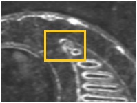 これに対し、ラインセンサで撮影した場合は、筒を回転させながらライン単位で撮影を繰り返すことで、1周分ぐるりとすべてピントが合った画像を撮影することができます。以下の場合、センサのライン方向は縦方向です。